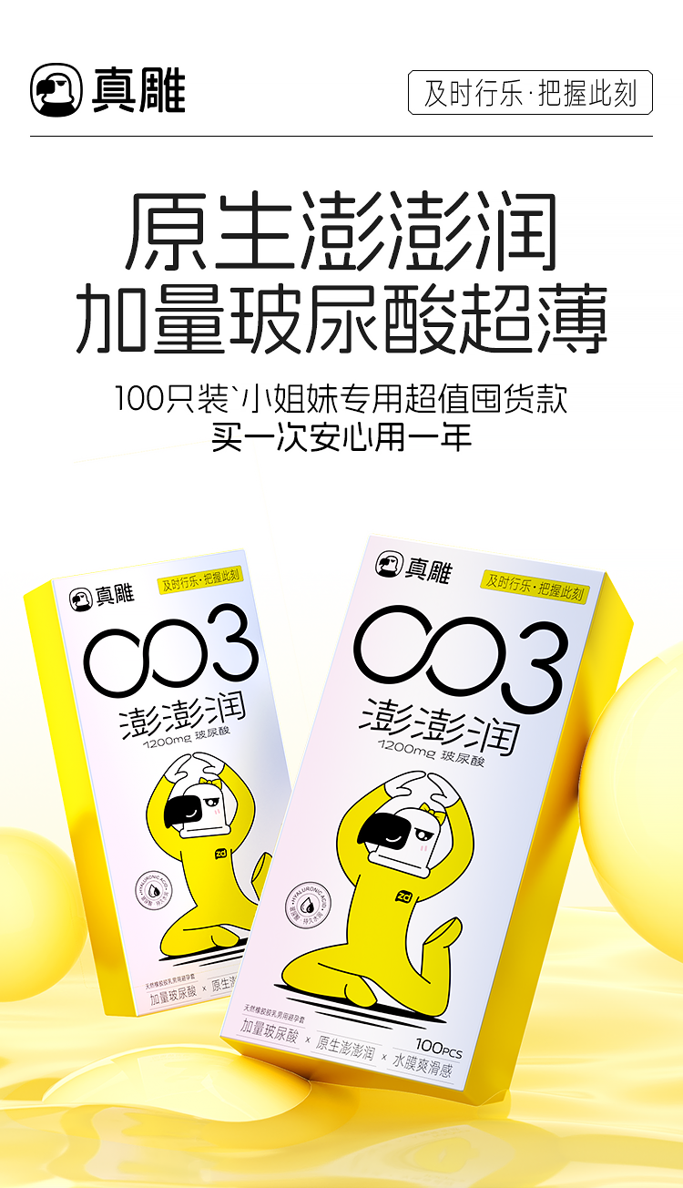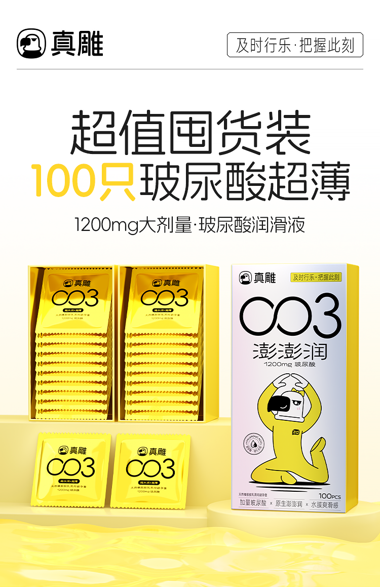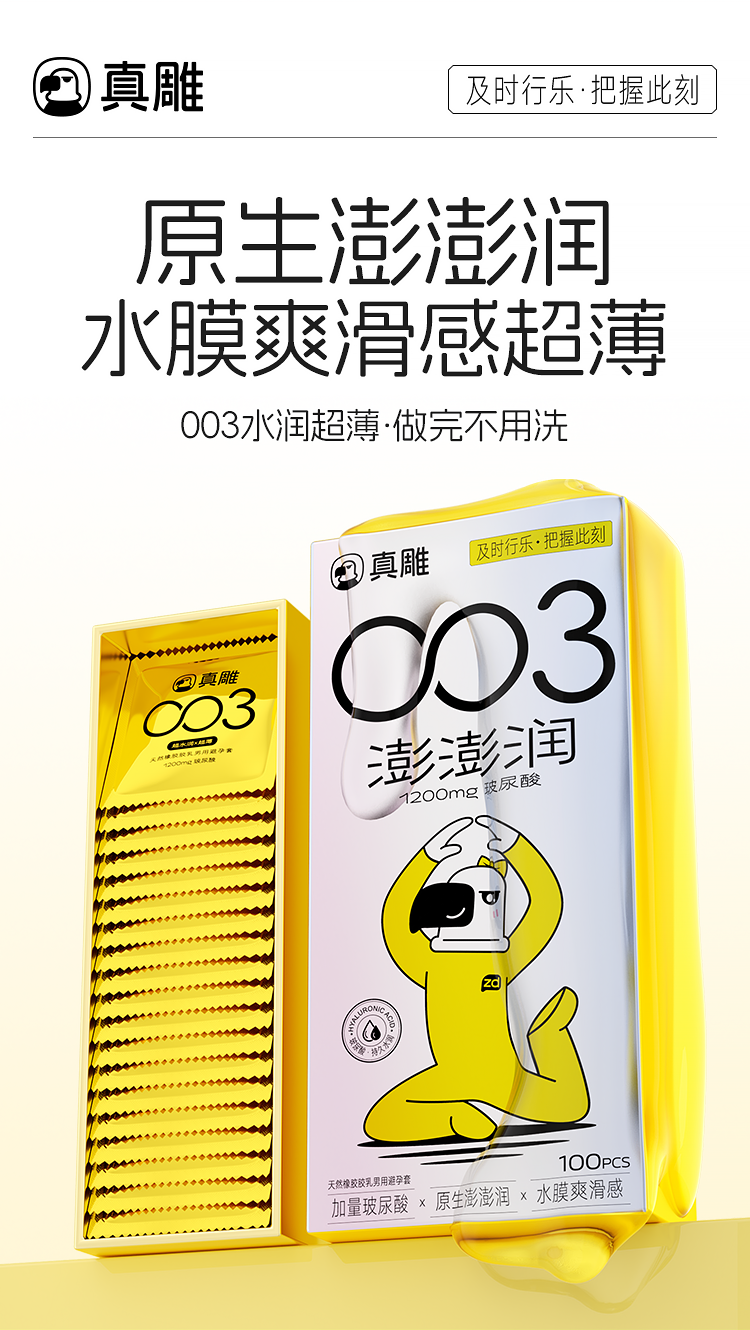 真雕(zdear)澎澎润超薄003玻尿酸避孕套100只装,1200mg玻尿酸超水润、家庭囤货装、一年囤一次。...